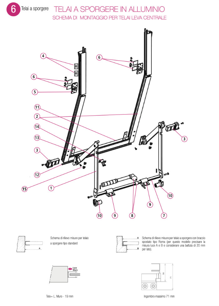 telaio a sporgere alluminio tapparella leva centrale