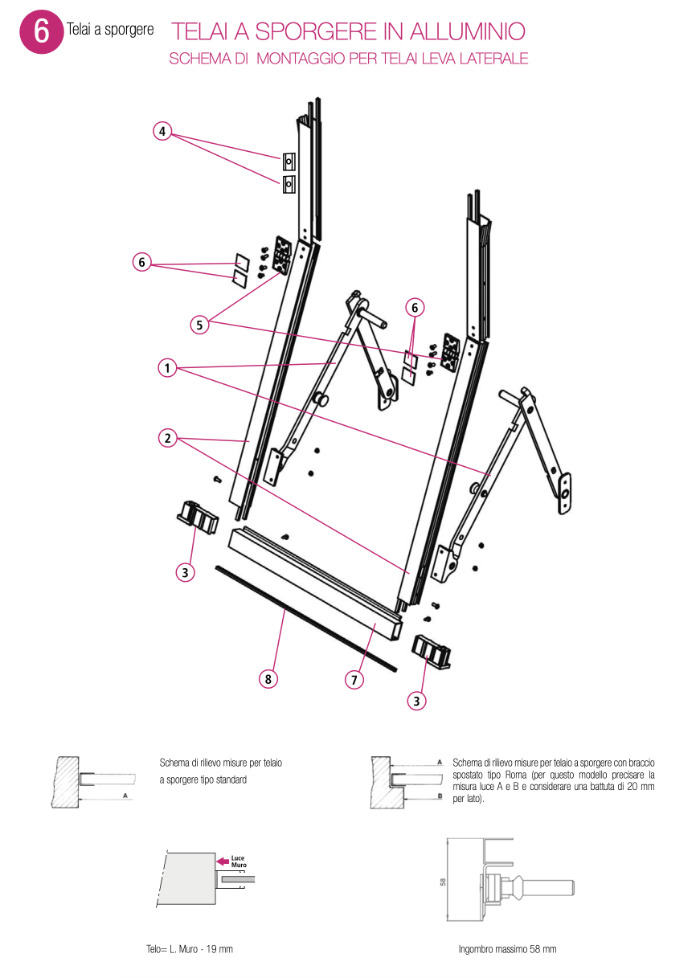 telaio a sporgere alluminio tapparella leva laterale