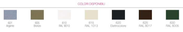 Available colors: silver, bronze, RAL 9010, RAL 1013, electrocolour, RAL 8017, RAL 6005.
