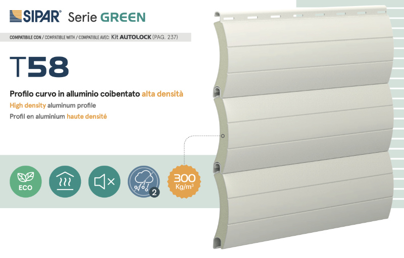 High density aluminum roller shutter - Sipar T58 - technical characteristics