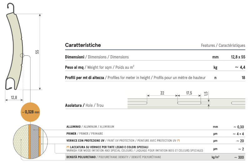 High Density Insulated Aluminum Roller Shutter - Curved Profile 12.8x55mm - Polyurethane Density 300kg/m3