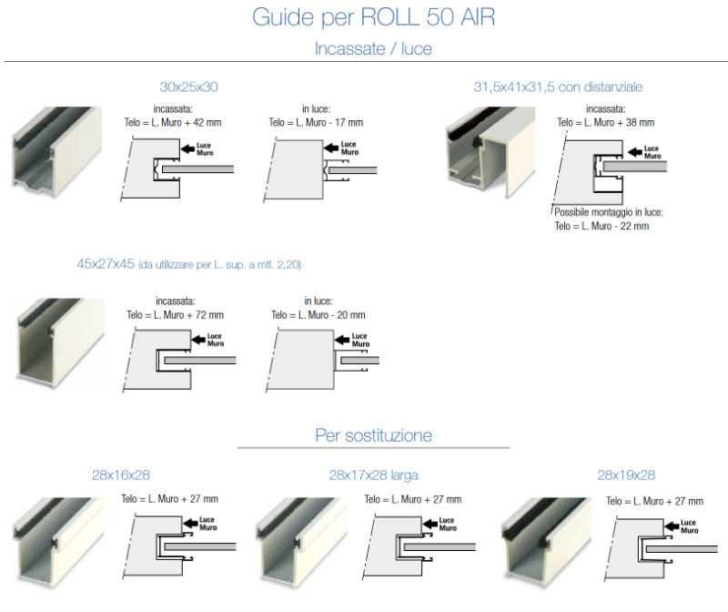 - Replacement or new installation of the roller shutter and the sliding guides : for the width of the roller shutter, with reference to the guides to be used, the necessary tolerances must be applied.