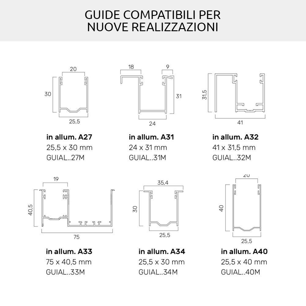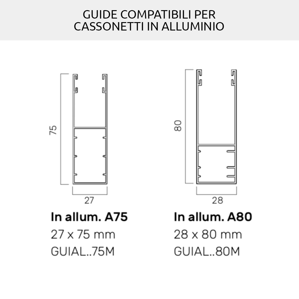 Replacement or new installation of roller shutters and sliding guides: for the width of the roller shutter, with reference to the guides to be used, the necessary tolerances must be taken. You can use the old guides if they are in good condition and if they have at least 16.5mm of usable space inside.