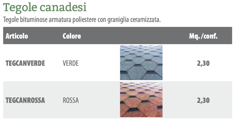 Tegole canadesi bituminose verdi