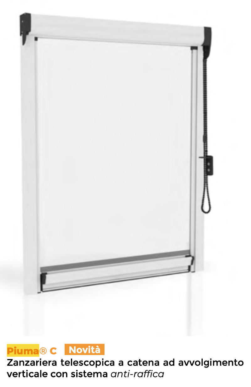 Piuma C Effezeta System chain insect screen is a telescopic model with chain and vertical winding made with a special