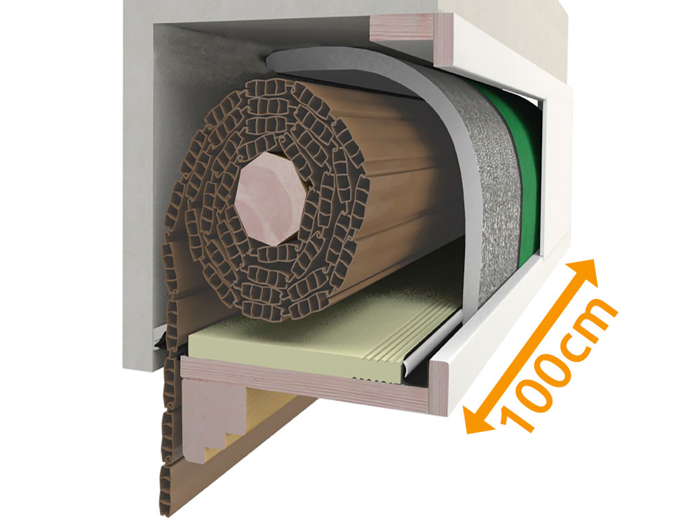 Composition box 100 cm for roller shutter insulation, Posaclima Renova system.