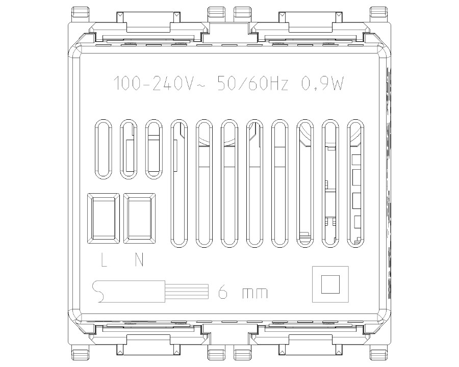 • Terminals: 2 (L and N) for line and neutral;