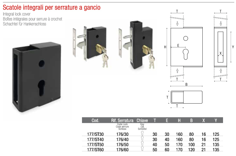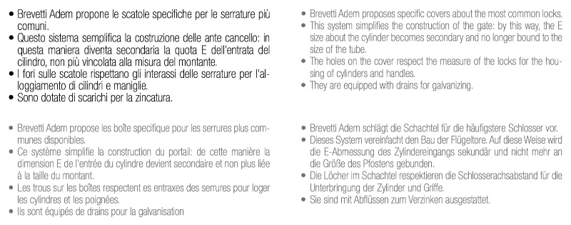 Integral boxes for hook gate lock: Brevetti Adem offers specific boxes for the most common locks.