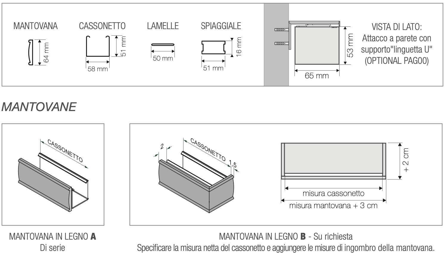 - Cassonetto: mechanical 58x51 mm in painted metal in the color closest to wood;