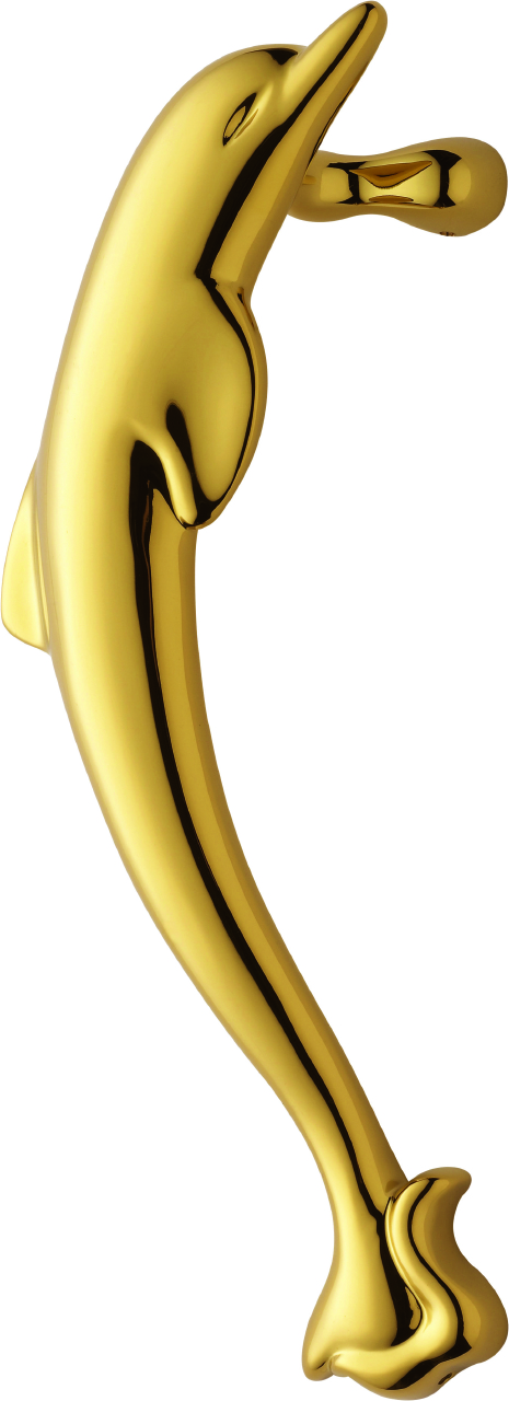 Dolphin shaped door handle. Made in brass in Italy by the Pasini company.