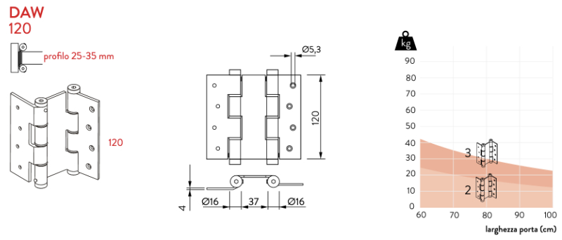 Cerniera Doppia Azione a Muro - Justor DAW 120 - Astuccio da 2 Pezzi