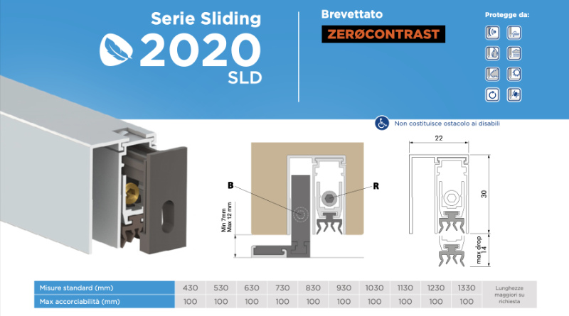 new ZERØCONTRAST mechanism for automatic draft excluders, easy to install and perfectly compatible with most sliding doors.