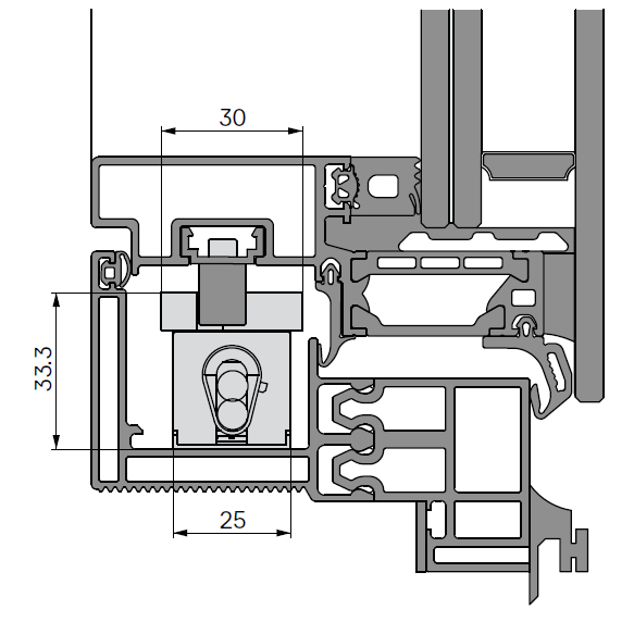 Used in combination with a chain actuator (QUASAR, VEGA, NANO 24 Vdc series), it guarantees maximum sealing when closing the window, even in the presence of multiple locking points.