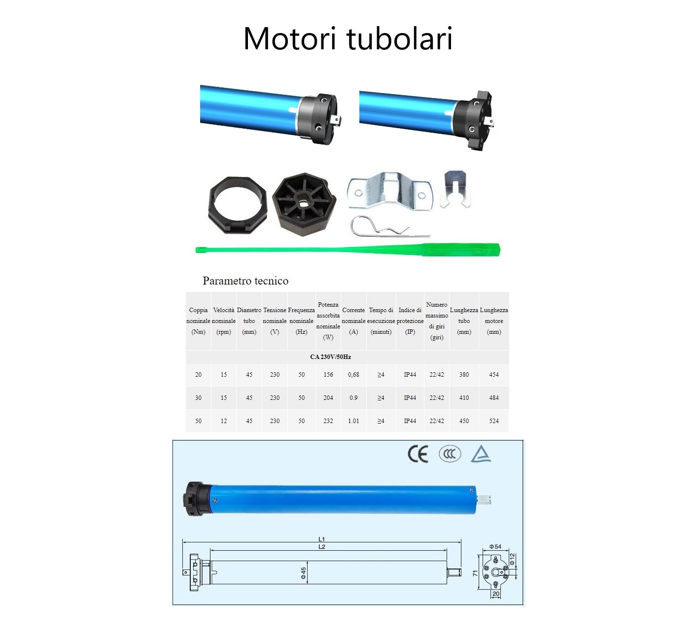 Tubular roller shutter type 20Nm, 30Nm or 50Nm AC 230V/50Hz. With multiple horsepower options available, find the ideal engine for your specific need.