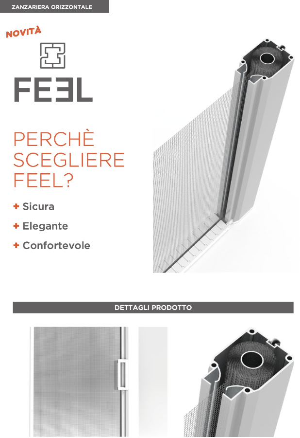The FEEL Effe Trade insect screen was born in 2019 and rewrites the history of insect screens, patented, thanks to the commitment in research and development, it perfectly meets the new market needs.
