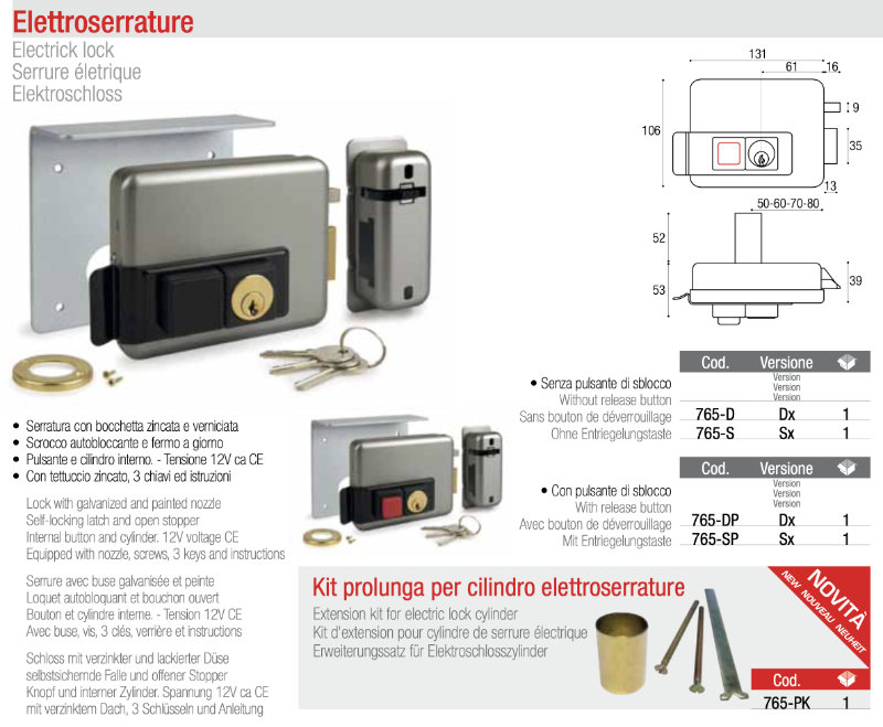 Electric lock for swing gate with release button (or without, if you select the variant), code 765 Adem.