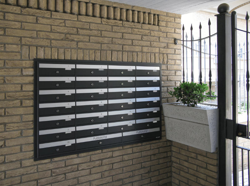 To contain advertising and prevent it from being dispersed in the entrance, integrated advertising boxes can be created with single, double or triple dimensions compared to the standard boxes, inserted harmoniously in the design of the filing cabinet.