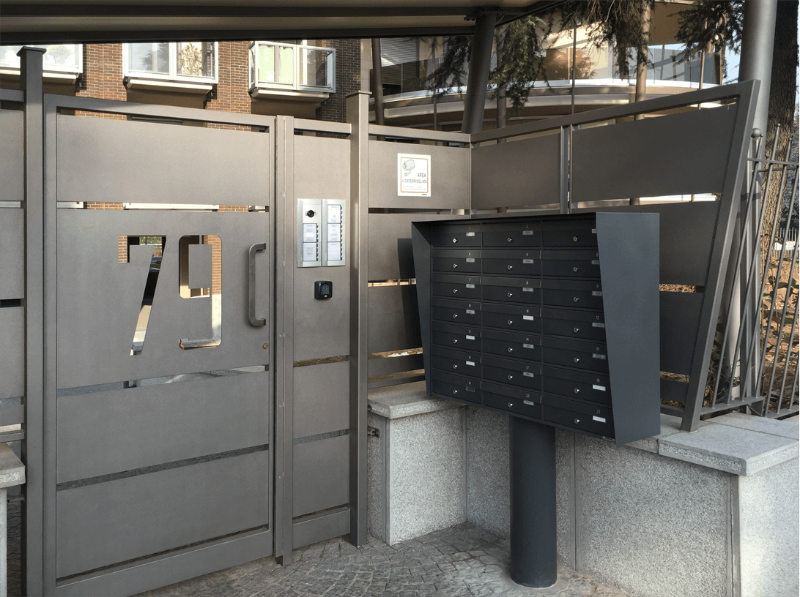 - Door in extruded aluminum equipped with a flap to cover the slit, vandal-proof name plate and safety lock with n. 2 keys;