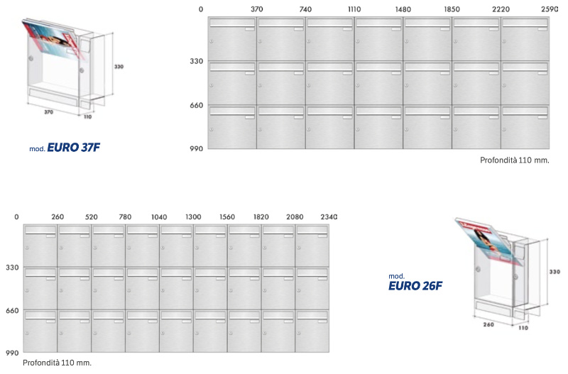 Cassette della Posta Esterne in Acciaio Sottili per Spazi Ridotti - EURO 37F / 26F