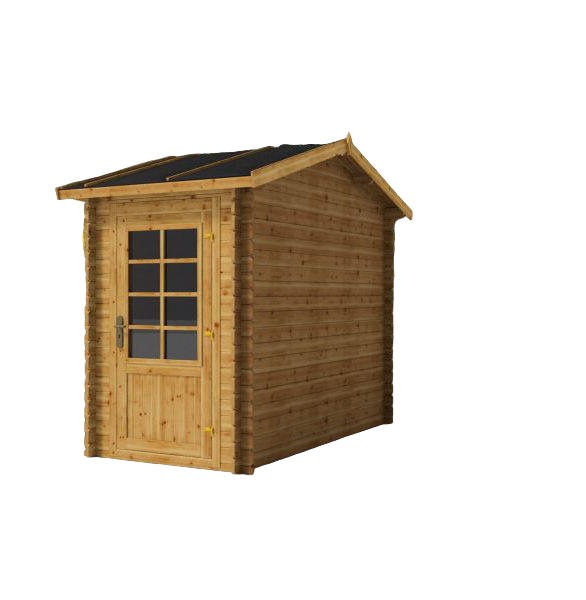 Wooden garden house with ground dimensions 150x300 cm and internal dimensions 126x276 cm.