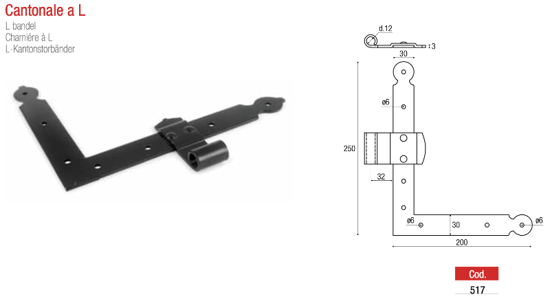 L-shaped corner bandel 517 Adem: robust and reliable fixing bracket for wooden doors and gates. This corner support guarantees long life and functionality over time.
