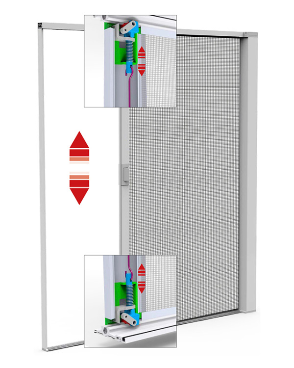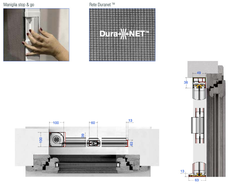 lateral insect screen with Stop & Go handle , and rounded box of 100 mm and characterized by a