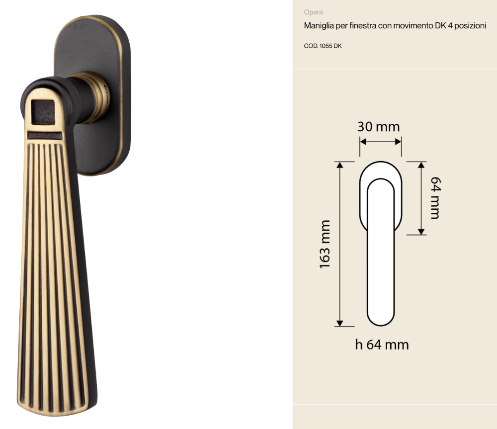 Linea Calì vintage window handles pay homage to the charm of times gone by, when every furnishing detail exuded elegance, care, and craftsmanship. Since 1986, the company has been creating window handles that combine classic design and modern functionality, transforming a simple everyday gesture into a stylish experience.