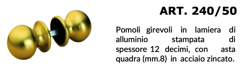Revolving knobs in pressed aluminum sheet 12/10 thick, with 8 mm square rod in galvanized steel.