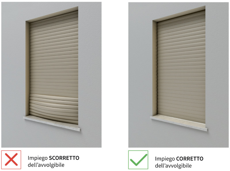 - Make sure that the sheet remains raised by at least 1 cm from the dock, to avoid that the weight of the roller shutter, acting on the end part, (last 5/6 slats) from causing deformation.