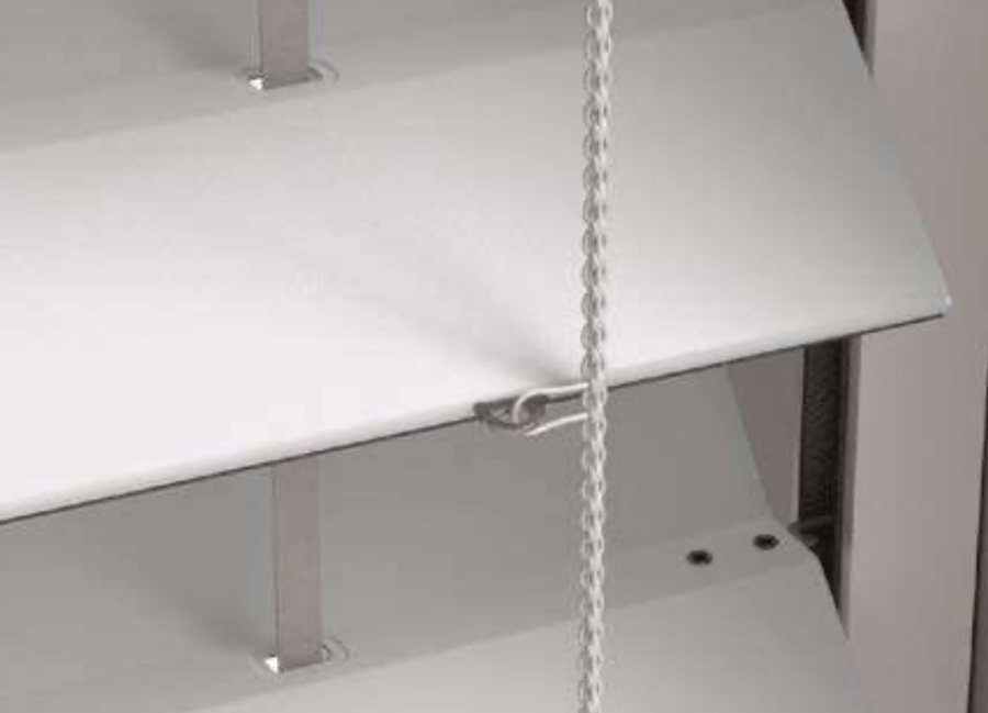 The 7mm diameter hole with hemmed finish protects the texband during the ascent and descent of the slats from any interference or abrasions that could damage it. The size of the texband of 6 x 0.33 mm almost completely covers the hole avoiding the entry of direct light.