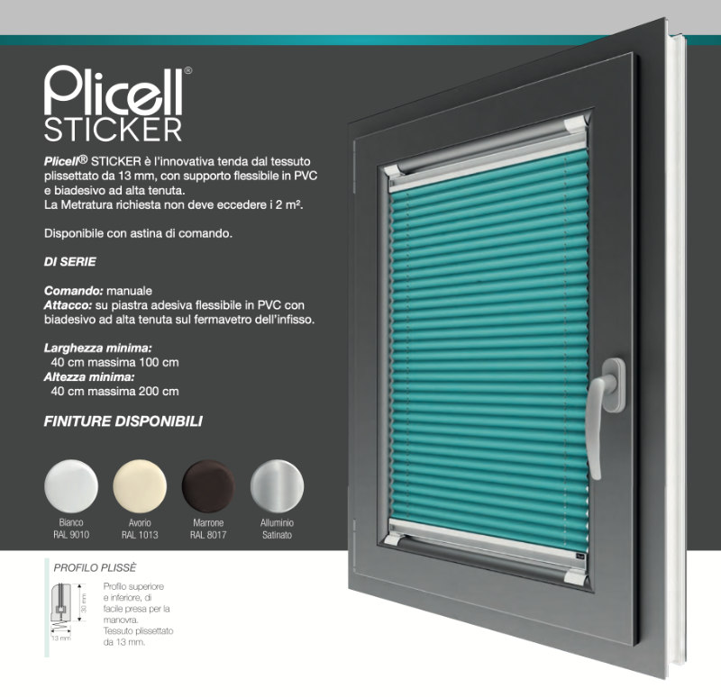 Tenda Plissettata Adesiva Plicell Sticker con Finitura a Scelta