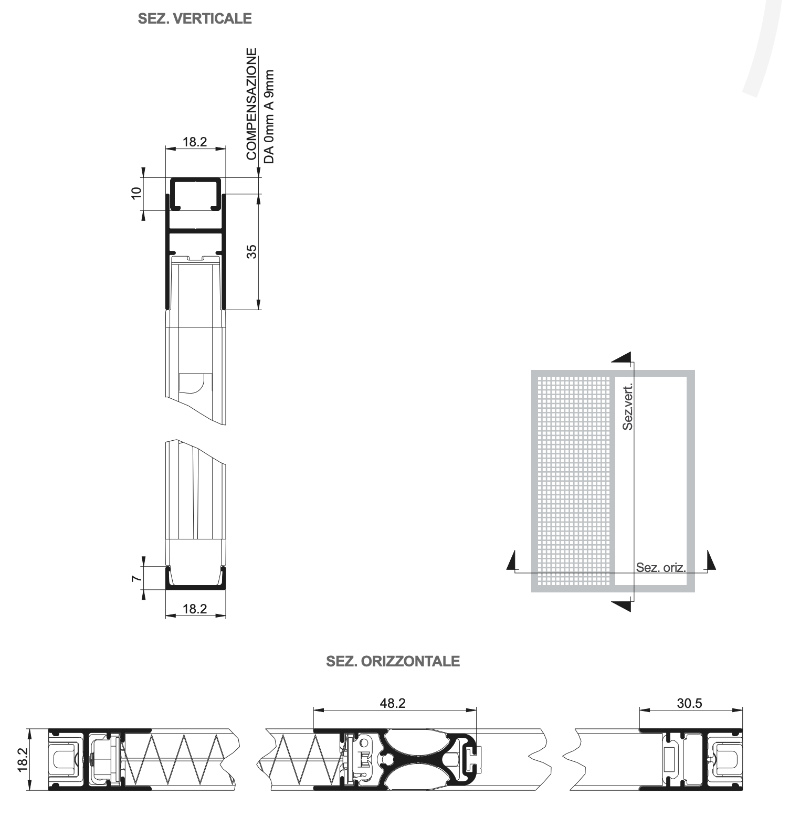 The Pasini MINERVA LP18 insect screen is the lateral pleated insect screen with a lowered ground guide of 7 mm and a minimum size of just 18 mm.