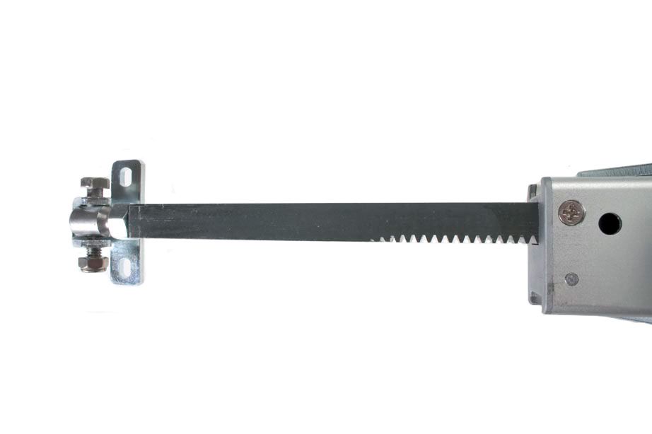Accessories supplied with Rack Ultraflex: sliding bracket in galvanized steel cod. 40235F (makes it possible to fix the entire length of the actuator), galvanized steel connector for fixing the stem to the mobile leaf.