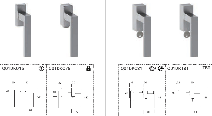 The Reguitti Phoenix Q01 window handle is composed of a set of