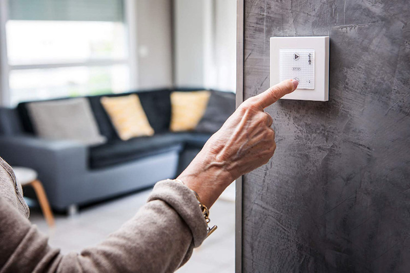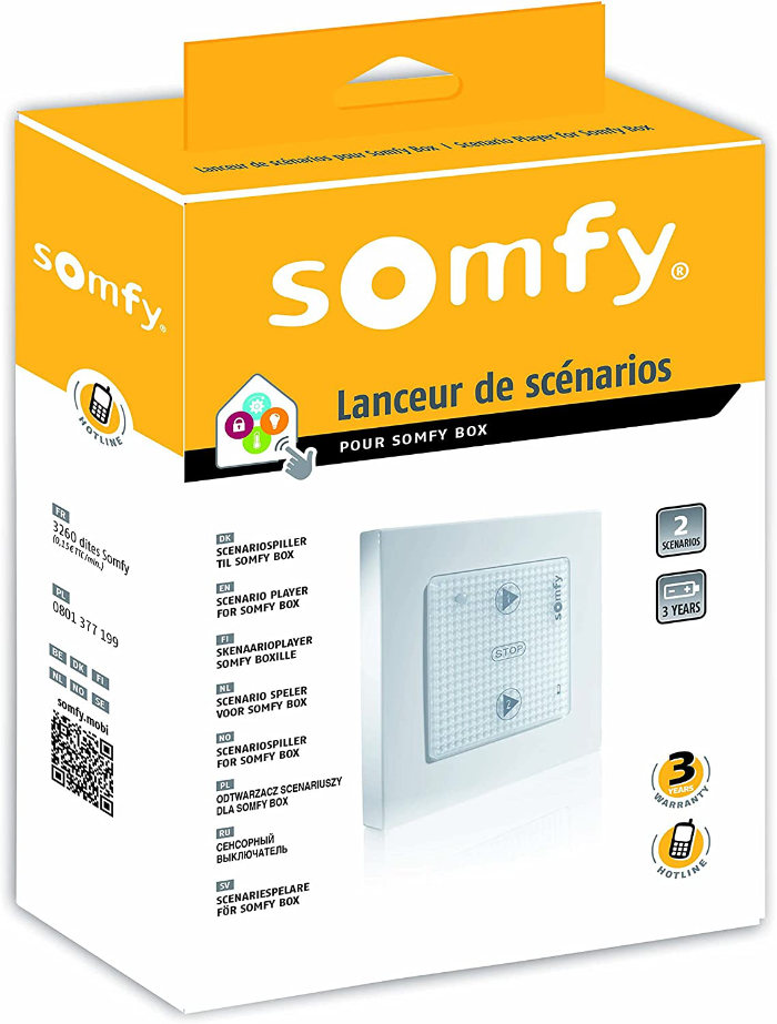 Wall-mounted wireless radio control point to start the scenarios programmed in the Somfy TaHoma, without having to connect to its interface.