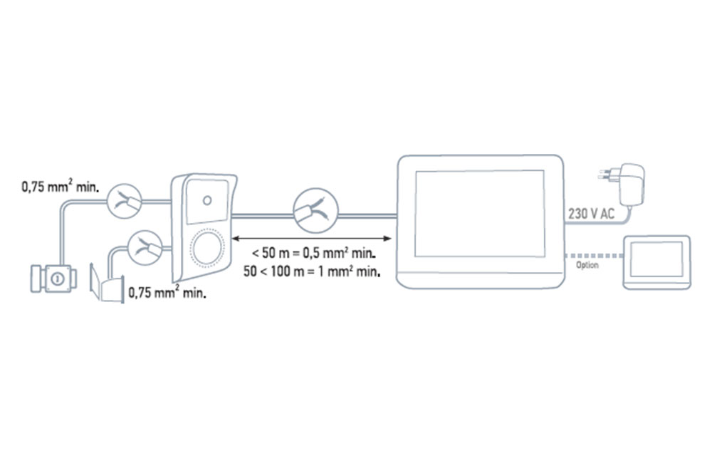 - Connection to the push-button panel with only 2 wires (up to 100 m);