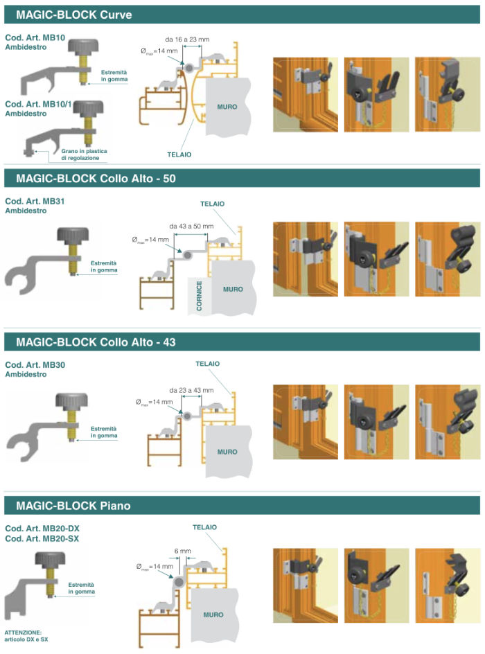 • Safety for the user, you avoid leaning against the external wall to lock / unlock the sash, in fact MAGIC-BLOCK is used from inside the house and works on the hinges of the window.