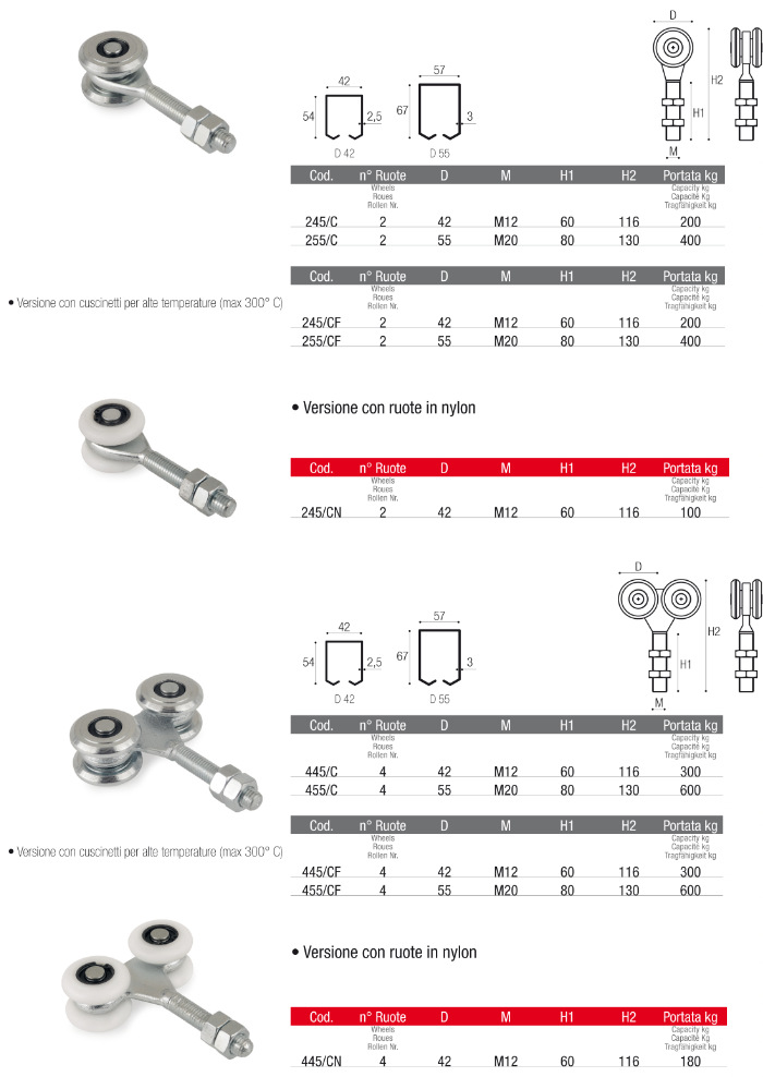 Trolleys for doors with different versions available in various sizes (select the variant you want):
