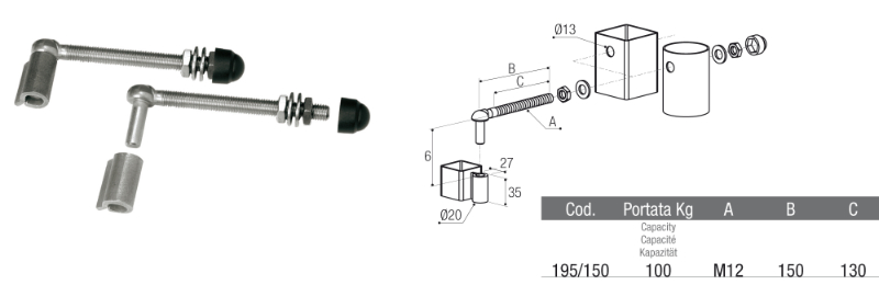 Stainless steel hinges with steel bushings to be welded, code 195/150 Brevetti Adem.