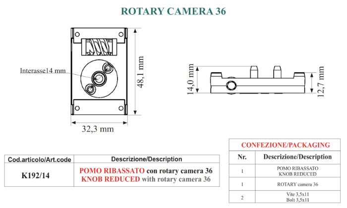 - K192 / 14 : LOWERED POMO handle with rotary camera 36.