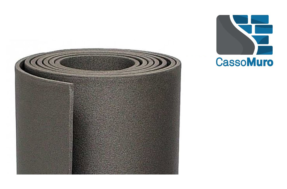 Insulating panel in cross-linked expanded polyethylene with additive with graphite coupled with a panel of expanded polyurethane covered with saturated glass fleece, for the thermo-acoustic insulation of Cassomuro.