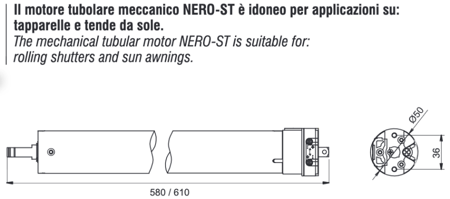 Ø50 NERO-ST mechanical tubular motor is suitable for use on rolling shutters and awnings.