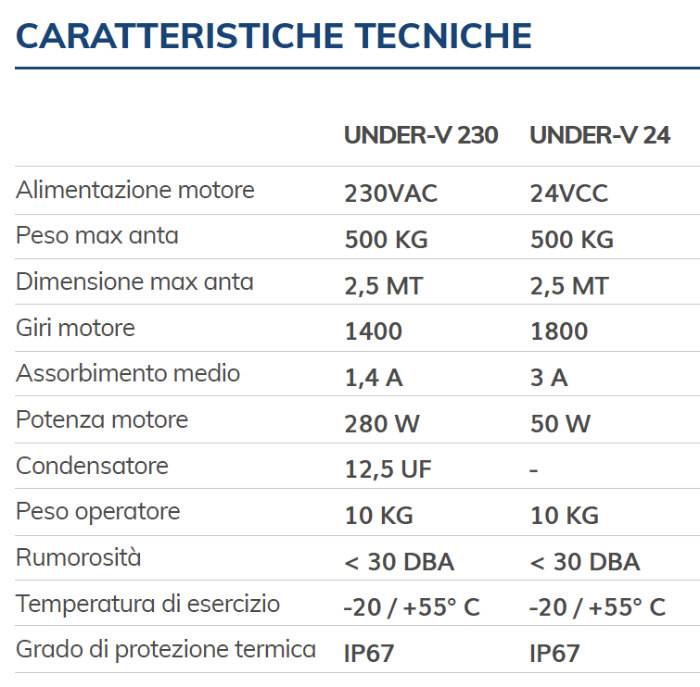 - Max leaf weight: 500 kg (both 230V and 24V);