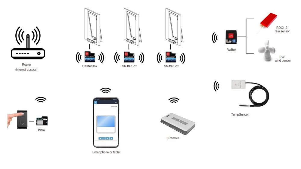 - No hubs or control units are needed : to transform the actuator into a wifi actuator, just ShutterBox WiFi Box Topp and a remote control;