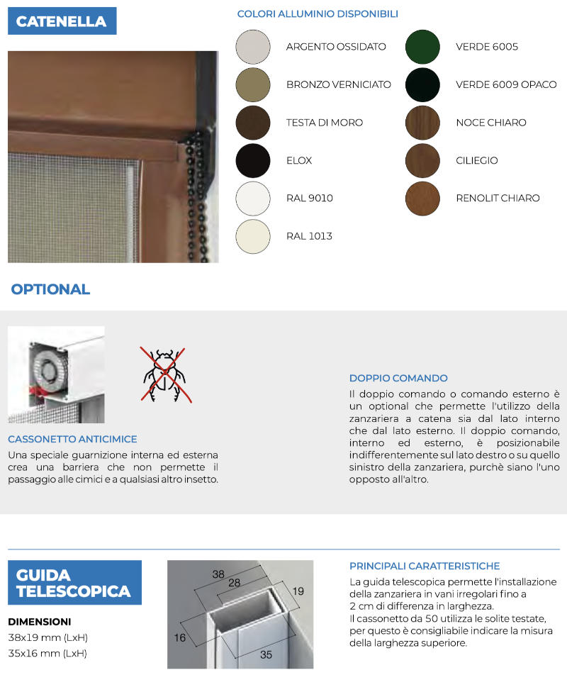 • Optional on request: telescopic guide anti-bug box, double control and increased black mesh (contact us if interested);