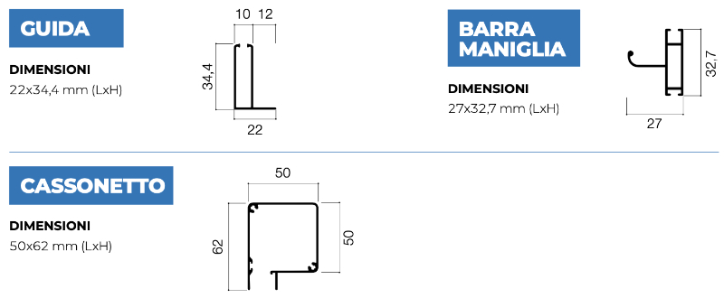 The telescopic guide allows the installation of the mosquito net in irregular spaces up to 2 cm difference in width. With the 40 mm box, use the usual headers, which is why it is advisable to indicate the measurement of the upper width.