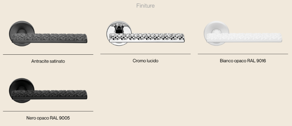 Crafted from high-quality Zincral and entirely produced in Italy , it harmoniously combines aesthetics and functionality. The three-dimensional texture not only enhances the style but also offers a pleasant and secure grip.