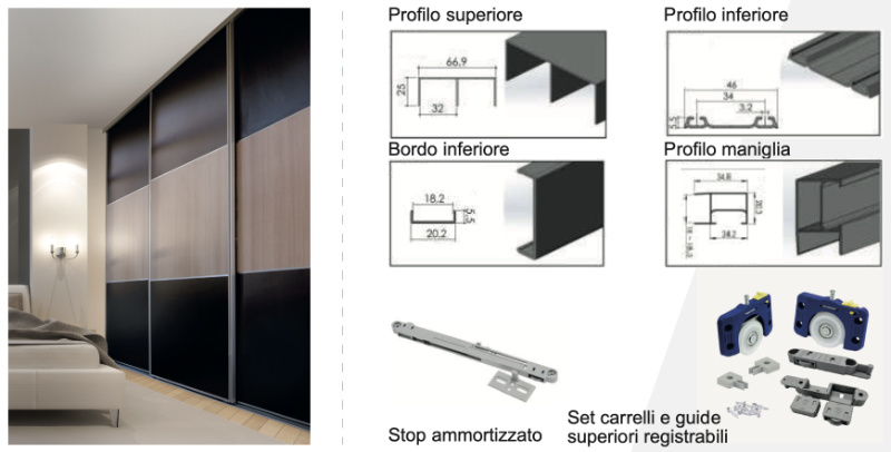 PlaKoSilent Pettiti Walk-in Closet Kit, the ideal choice for creating custom-made wardrobes with sliding doors, which can be purchased in two variants to adapt perfectly to both solutions with 2 and 3 doors.