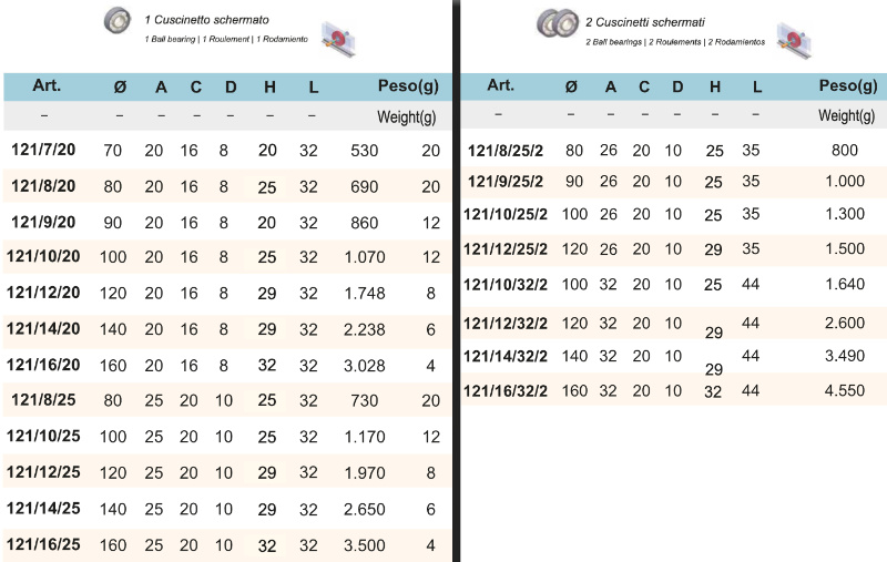 wheels for gates with closed support can be equipped with one or two bearings depending on the capacity required by the gate.