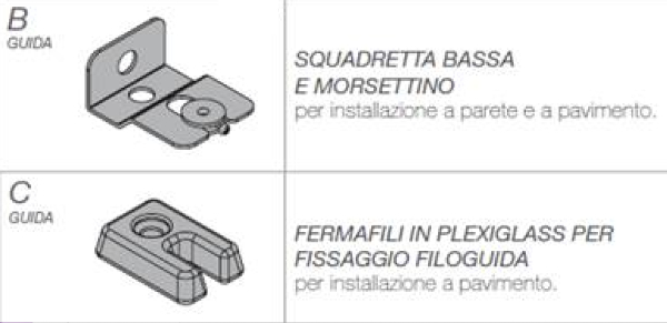 In this photo you can see the two different types: low bracket and clamp (B) or plexiglass wire holders for wire guide fixing (C).